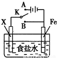 | A、若X为碳棒,开关K须置于A处才可以减缓铁的腐蚀 | B、若X为锌棒,开关K须置于B处才可以减缓铁的腐蚀 | C、若X为铜棒,开关K须置于A处才可以减缓铁的腐蚀 | D、若X为碳棒,开关K置于A、B之间(如图)时,向溶液中滴加K3[Fe(CN)6]溶液,出现蓝色沉淀 |