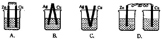下列烧杯中盛放的都是稀硫酸,在铜电极上能产生气泡的是: