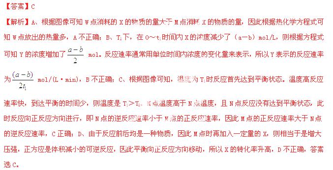 A.该反应进行到M点放出的热量大于进行到W点放出的热量