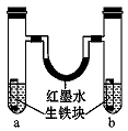 右图装置中,U形管内为红墨水,a、b试管内分别盛有食盐水和氯化铵溶液(呈酸性),各加入生