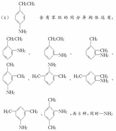 还可连在—CH3或—CH2—CH3上,—CH3、—CH2—CH3也可连在—NH2上。因此符合条件的同分异构体共有19种。其中核磁共振氢谱为4组峰,且面积比为6∶2∶2∶1的是![]()