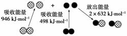 化学反应中的能量变化,是由化学反应中旧化学键断裂时吸收的能量与新化学键形成时放出的能量不同所致。下图为N2(g)和O2(g)生成NO(g)过程中的能量变化:
