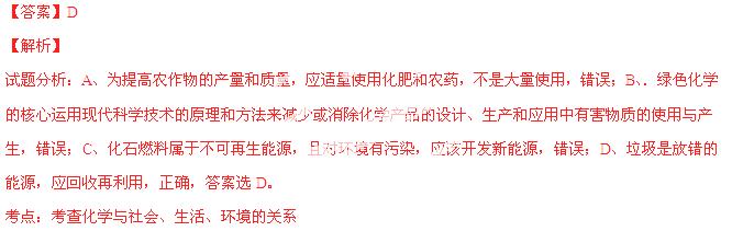 D.提倡人们购物时不用塑料袋,是为了防止白色污染