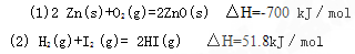(2) 氢气与碘蒸气反应,生成1molHI气体时,吸收25.9KJ的热量;