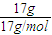C.17 g NH3的物质的量为=1mol,每个NH3含有10个电子,电子的物质的量为1mol×10=10mol,故含有电子的数目为10mol×NAmol-1=10NA,故C正确;