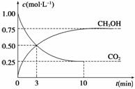CH3OH(g)£«H2O(g)¡¡¦¤H£½£49.0 kJ¡¤mol£1¡£ÏÖÏòÌå»ýΪ1 LµÄÃܱÕÈÝÆ÷ÖгäÈë1 mol CO2ºÍ3 mol H2£¬·´Ó¦¹ý³ÌÖвâµÃCO2ºÍCH3OH(g)µÄŨ¶ÈËæÊ±¼äµÄ±ä»¯ÈçͼËùʾ¡£