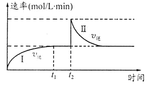 | A、0~t2时,v正>v逆 | B、t2时刻改变的条件可能是加催化剂 | C、Ⅰ、Ⅱ两过程达到反应限度时,A的体积分数Ⅰ=Ⅱ | D、Ⅰ、Ⅱ两过程达到反应限度时,平衡常数I<Ⅱ |