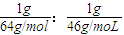 所以等质量的SO2和NO2的密度之比为=32:23,