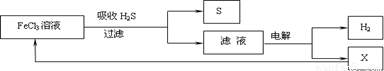 | A、吸收H2S的离子方程式为:2Fe3++H2S═2Fe2++S↓+2H+ | B、电解过程中的阳极反应主要为:2Cl--2e-═Cl2↑ | C、电解产物X在该工艺流程中可循环利用 | D、实验室可用点燃充分燃烧的方法消除H2S污染 |