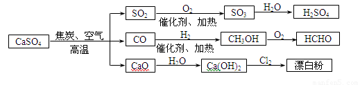 硫酸钙是一种用途非常广泛的产品,可用于生产硫酸、漂白粉等一系列物质(见图)。下列说法正确的是