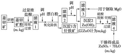 硫酸锌可作为食品锌强化剂的原料。工业上常用菱锌矿生产硫酸锌,菱锌矿的主要成分是ZnCO3,并含少量的Fe2O3 、FeCO3、MgO、CaO等,生产工艺流程示意如图下: