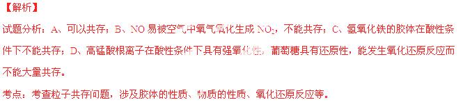 D.高锰酸钾溶液: H+、Na+、SO42-、葡萄糖分子