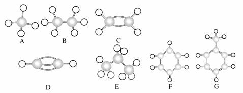A~G是几种烃的分子球棍模型(如图),据此回答下列问题: