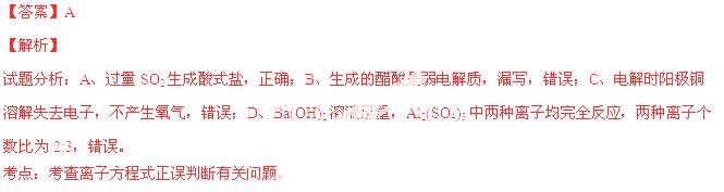 A.氨水中通入过量SO2:SO2+NH3·H2O===NH