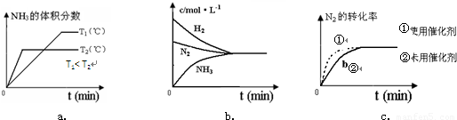 2 置于体积为10L的密闭容器内,反应达到平衡状态时,测得平衡混合气体中氨的体积分数为20%,则该温度下反应的K=______(可用分数表示).能说明该反应达到化学平衡状态的是______(填字母).