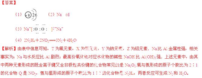 (3)T、X、Y、Z中有两种元素能形成既含离子键又含非极性共价键的化合物,写出该化