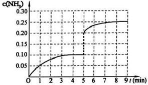 ⑸ 第5分钟末将容器的体积缩小一半后,若在第8分钟末达到新的平衡(此时NH3浓度约为0.25mol/L),请在上图中画出第5分钟末到此平衡时NH3浓度的变化曲线。