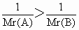 ,则两气体的相对分子质量Mr(A)和Mr(B)关系为