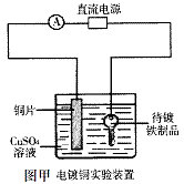B.图甲装置中,待镀铁制品应与电源负极相连