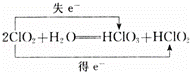 国家卫生部在2000年前就决定逐步使用稳定、高效、无毒的二氧化氯取代氯气消毒饮用水.已知二氧化氯溶于水时有亚氯酸根离子(ClO2﹣)生成,且氧化产物与还原产物的物质的量之比为1:1.二氧化氯溶于水的反应方程式2ClO2+H2O═HClO3+HClO2,请标明电子转移方向和数目