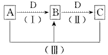 A、B、C、D都是中学化学常见的物质,其中A、B、C均含有同一种元素。在一定条件下相互转化的关系如图所示(部分反应中的H2O已略去)。请按要求回答下列问题: