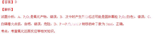 色烟雾,反应的化学方程式为:5KC1O3+6P → 3P2O5+5KC1。下列有关该反应的叙述中正确的是