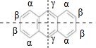 D、蒽分子是高度对称结构,如图关于虚线对称,有如图三种H原子,二元氯代,若为取代α位2个H原子有3种,若为取代β位2gH原子有3种,若为取代γ位2个H原子有1种,若为取代α-β位H原子有4种,若为取代α-γ位H原子有2种,若为取代β-γ位H原子有2种,故共有3+3+1+4+2+2=15,故D错误;