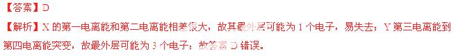 已知X、Y是主族元素,I为电离能,单位是kJ·mol-1。请根据下表所列数据判断,下列说法错误的是( )