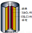 最早使用的化学电源是锌锰电池,即大家所熟悉的干电池(dry cell),其结构如下图所示:尽管这种电池的历史悠久,但对它的电化学过程尚未完全了解。一般认为,放电时,电池中的反应如下: