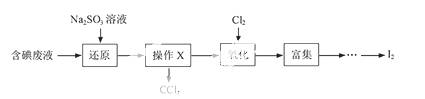 (1)向含碘废液中加入稍过量的Na2SO3溶液,将废液中的I2还原为I-,其离子方程式为 ;该操作将I2还原为I-的目的是 。
