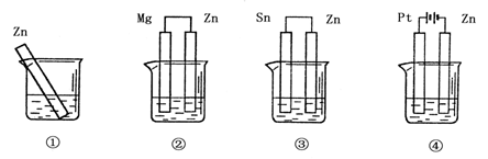 分别放在0.1mol·L-1H2SO4溶液中的四块相同的纯锌片,其腐蚀速率由快到慢的顺序是( )