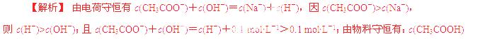 用物质的量都是0.1 mol的CH3COOH和CH3COONa配成1 L混合溶液,已知其中c(CH3COO-)>c(Na+),对该溶液的下列判断正确的是 ( )