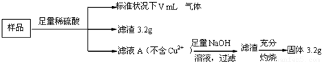 | A、滤液A中阳离子为Fe2+、H+ | B、样品中金属Fe的质量为2.24g | C、样品中CuO的质量为4.0g | D、V=448 |