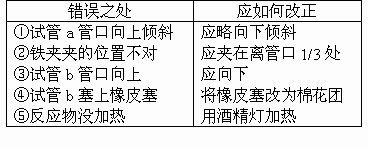 实验室里若用如右图所示装置制取氨气,试用表格形式列出图中装置的错误之处,并用文字简要说明如何改正.