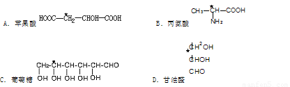 | A、 苹果酸 | B、 丙氨酸 | C、 葡萄糖 | D、 甘油醛 |