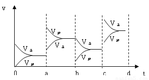 2SO3(g),△H<0达到平衡时,由于条件改变而引起反应速度和化学平衡的变化情况,ab过程中改变的条件可能是 ;bc过程中改变的条件可能是 ;若增大压强时,反应速度变化情况画在c-d处。![]()