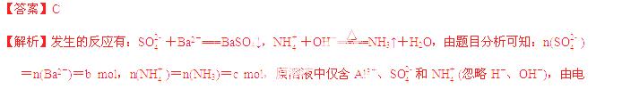 完全沉淀;如加入足量强碱并加热可得到c mol NH3,则原溶液中的Al3+浓度(mol·L-1)为( )