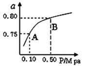 ⑵某温度下反应①中H2的平衡转化率(a)与体系总压强(P)的关系,如图所示。则平衡状态由A变到B时,平衡常数K(A) K(B)(填“>”、“<”或“=”)。据反应①与②可推导出K1、K2与K3之间的关系,则K3= (用K1、K2表示)。