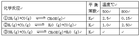 甲醇是重要的化学工业基础原料和清洁液体燃料。工业上可利用CO或CO2来生产燃料甲醇。已知甲醇制备的有关化学反应以及在不同温度下的化学反应平衡常数如下表所示: