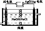⑷甲醇燃料电池有着广泛的用途,同时Al-AgO电池是应用广泛的鱼雷电池,其原理如图所示。该电池的负极反应式是 。