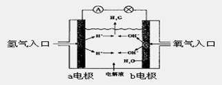 (1)氢氧燃料电池的能量转化主要形式是 ,在导线中电流流动方向为(用a、b表示) ,