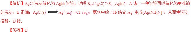 D.因为Ksp(AgCl)>Ksp(AgOH),故氨水能使AgCl溶解