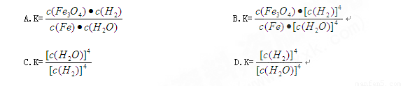 对于3Fe(s)+4H2O(g)Fe3O4(s)+4H2(g),反应的化学平衡常数的表达式为( )