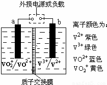 某储能电池的原理如图所示,溶液中c(H+)=2.0mol·L-1,阴离子为SO42-,a、b均为惰性电极,充电过程中左槽溶液颜色由蓝色变为黄色。下列叙述正确的是