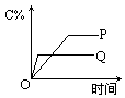 C(g)+D(g)的反应体系中,C的百分含量和时间的关系如下图所示,若反应分别在400℃和100℃下进行,所得曲线分别为Q与P,正反应是吸热反应的图为