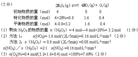 (3)5min时,O2的物质的量占混合气体总物质的量的百分比。