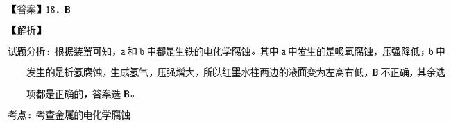 D.a试管中发生了吸氧腐蚀,b试管中发生了析氢腐蚀