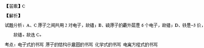 D.硫酸铁的电离方程式 Fe2(SO4)3