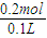 A. 2mol/L B. 1mol/L C. 0.4mol/L D. 0.2mol/L