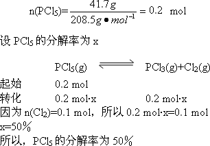 PCl3(g)+Cl2(g)达到平衡,测得容器中含有0.1 mol Cl2,求PCl5的分解百分率.